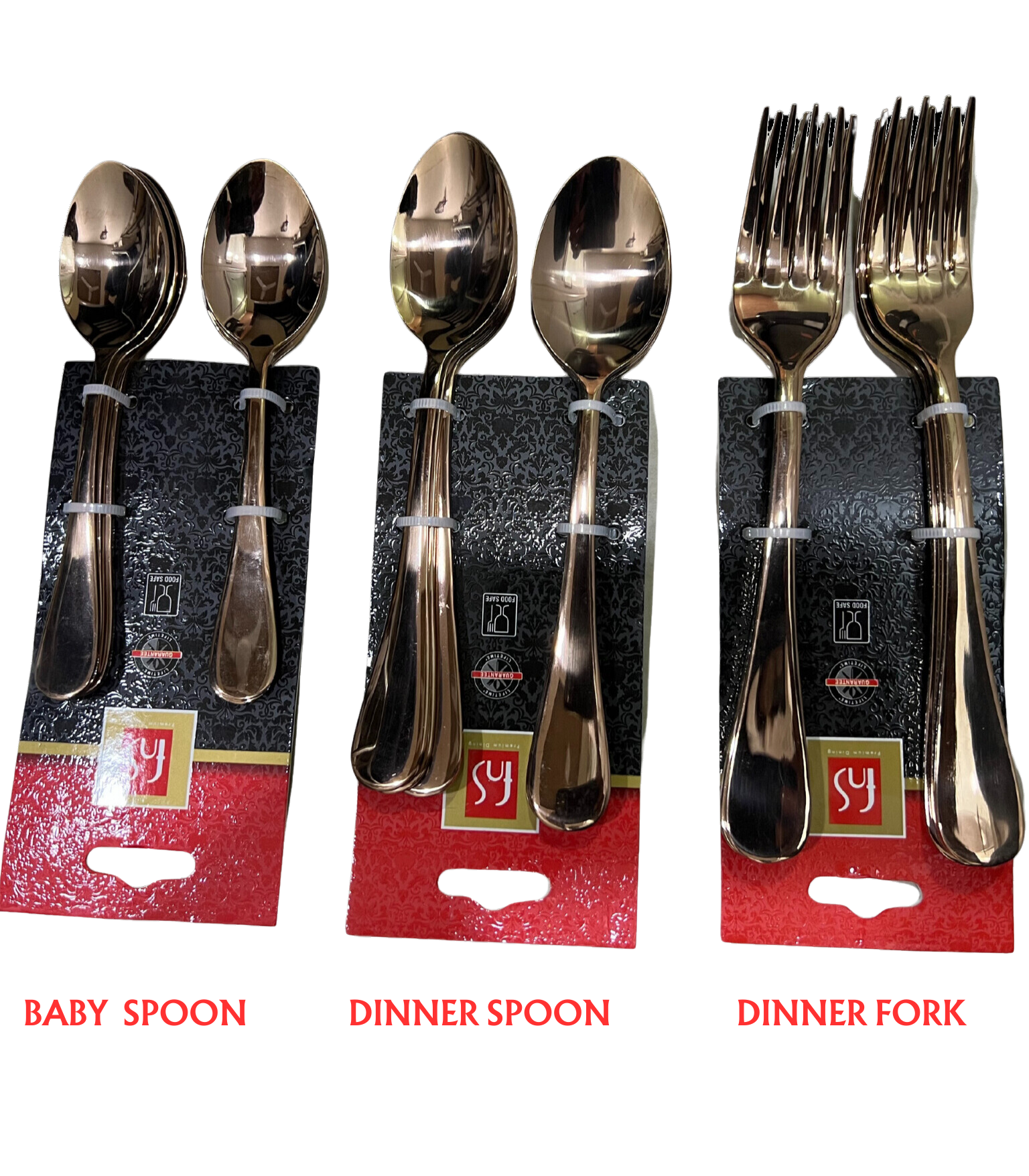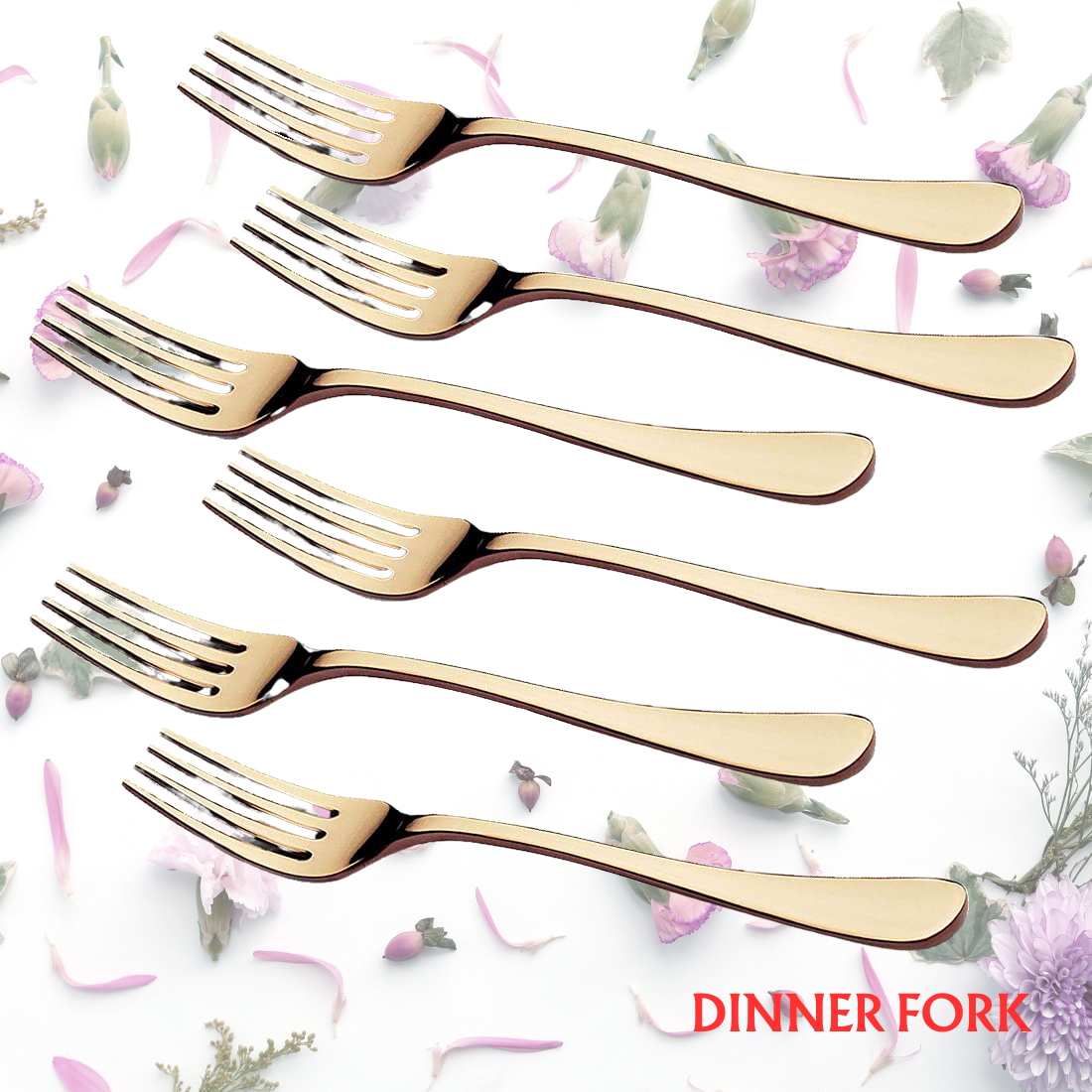 FnS Stainless Steel Rose Gold Premium Cutlery | Spoon | Forks | Set of 6