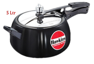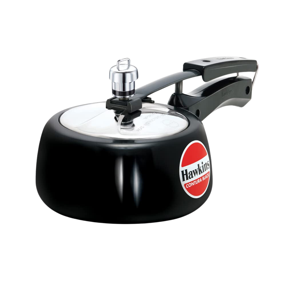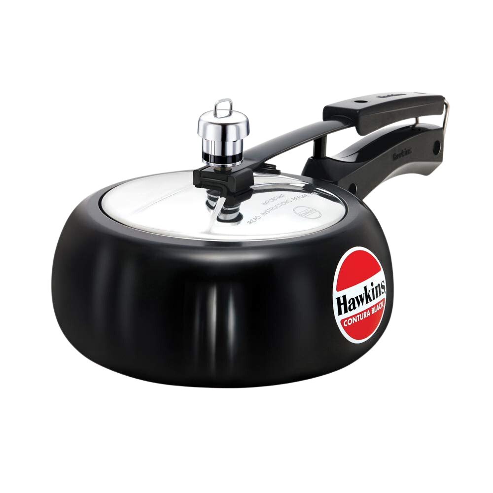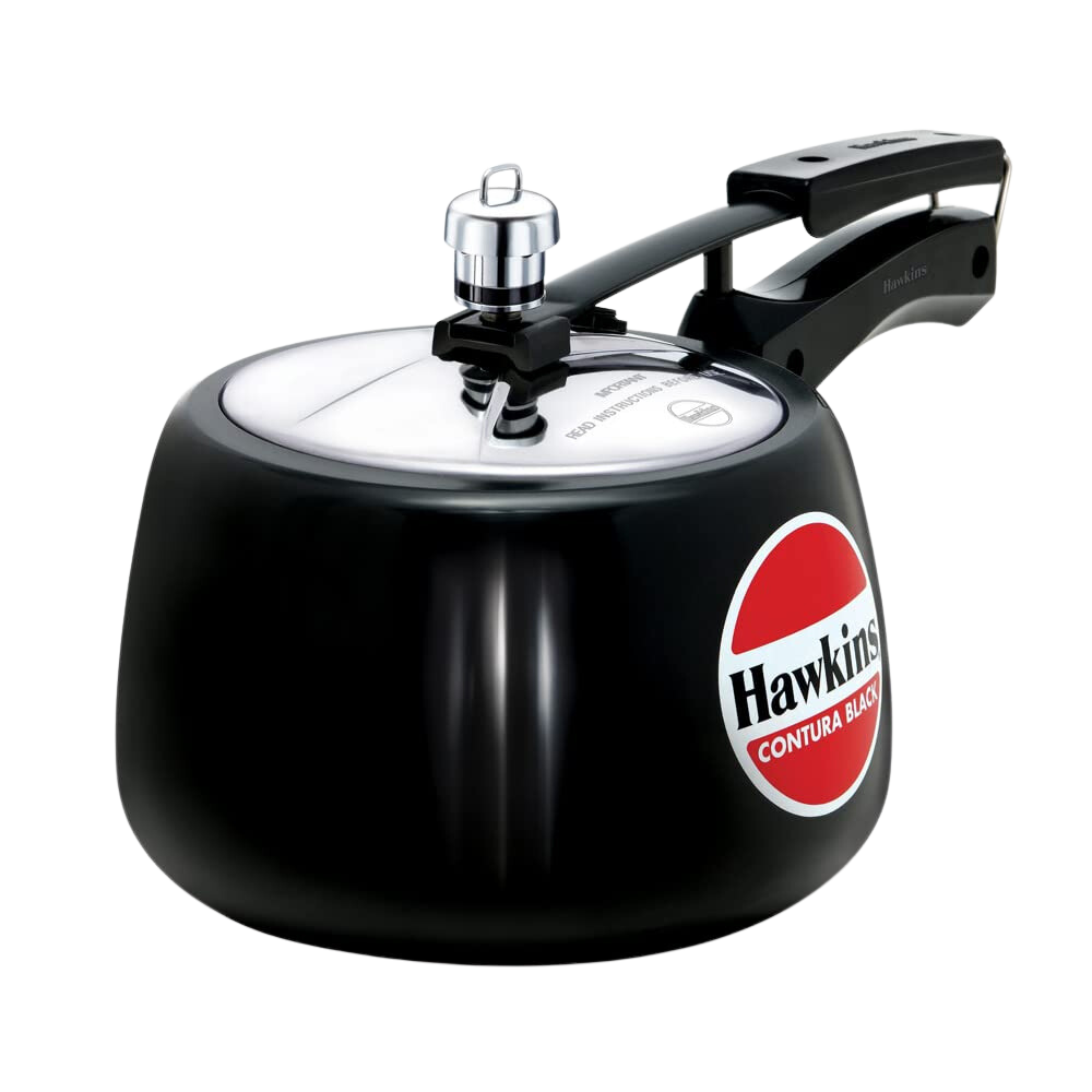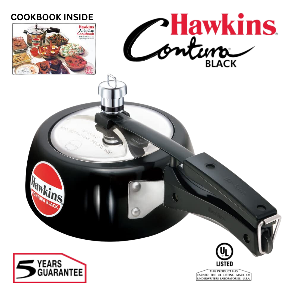 The hard anodized models have all the features and benefits of the Hawkins Contura Pressure Cooker in a hard anodized body and stainless steel lid. The beautiful, durable black finish given by 60 micron thick hard anodizing has two benefits. It makes the pressure cooker absorb heat faster, making it more energy-efficient. And the pressure cooker stays looking new for years. Recommended for use on gas stoves.