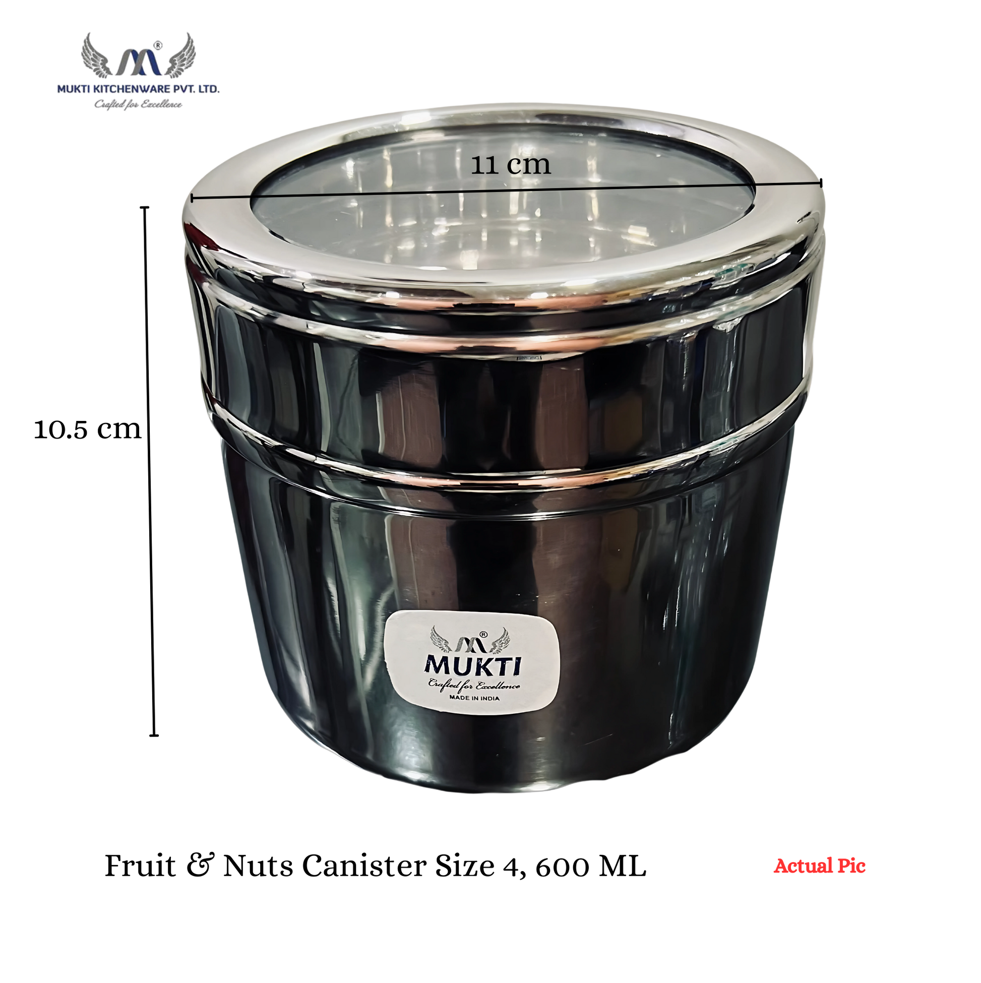 MUKTI Stainless Steel Premium Fruit & Nuts Food Storage Canister | Multipurpose | Mirror Polish | See Thru Lid