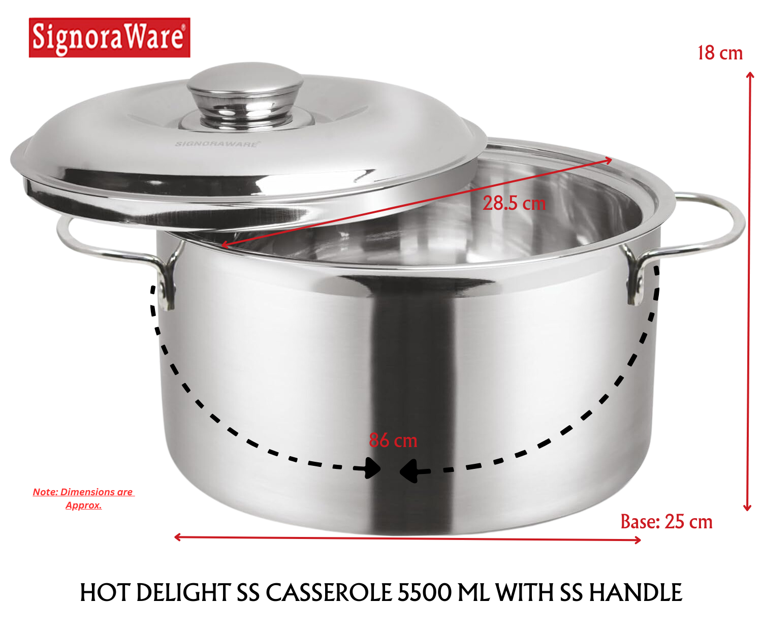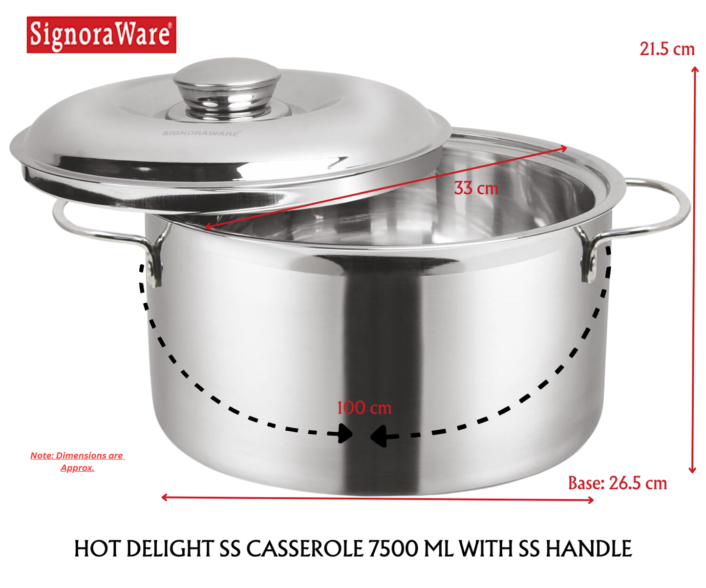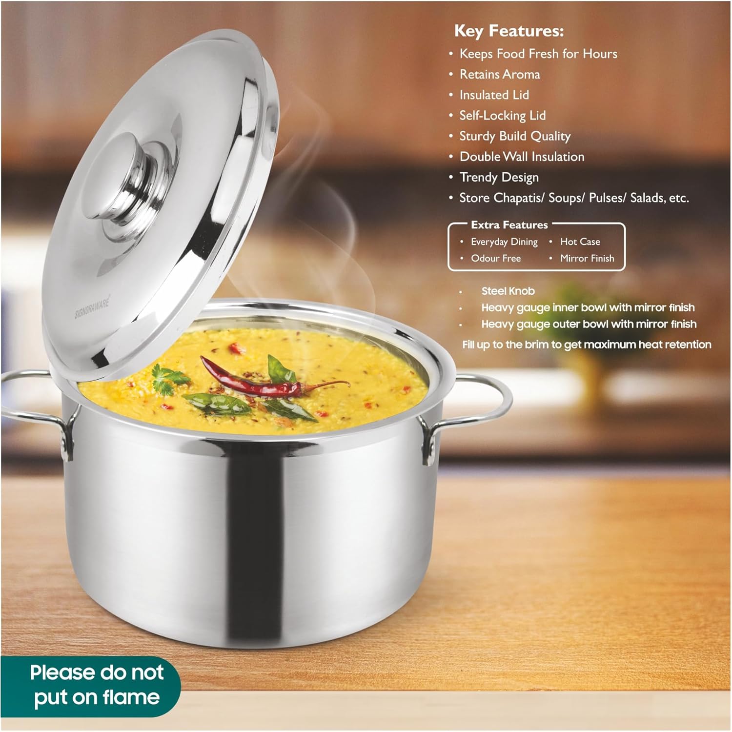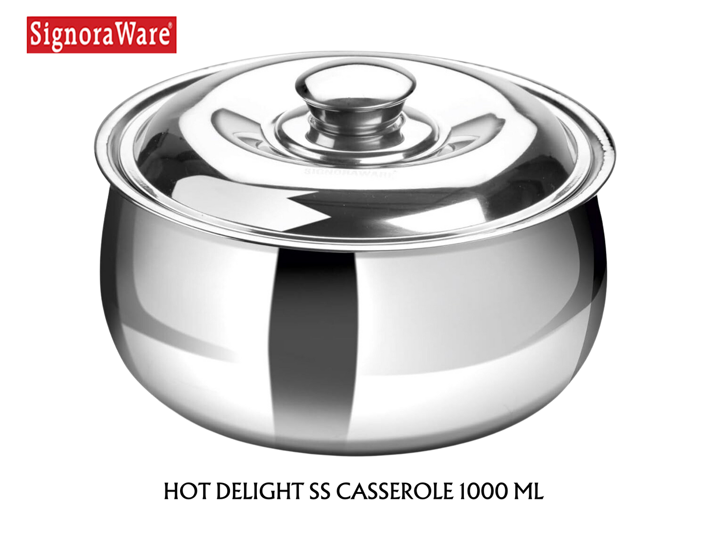 SIGNORAWARE HOT DELIGHT CASSEROLE: Hot Delight Casserole is designed to give you a refreshing dining experience. Its double-walled Insulation system allows maximum temperature retention. This product is durable, sleek and built to last a lifetime and the stainless steel body gives it a timeless look. Its high quality stainless steel body keeps it rust free and Corrosion free thus making it long lasting. The product has been designed to enhance the look and feel of the dining experience.