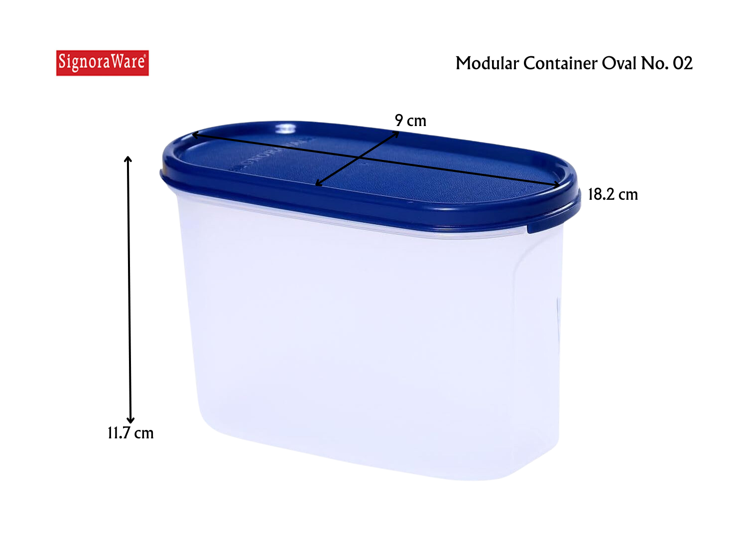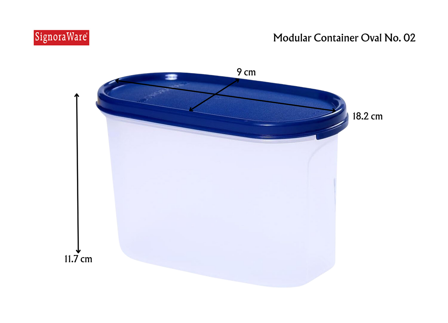 SIGNORAWARE Modular Oval BPA Free Plastic Multipurpose Container | Airtight | Leak proof | Stackable | Kitchen & Pantry Storage