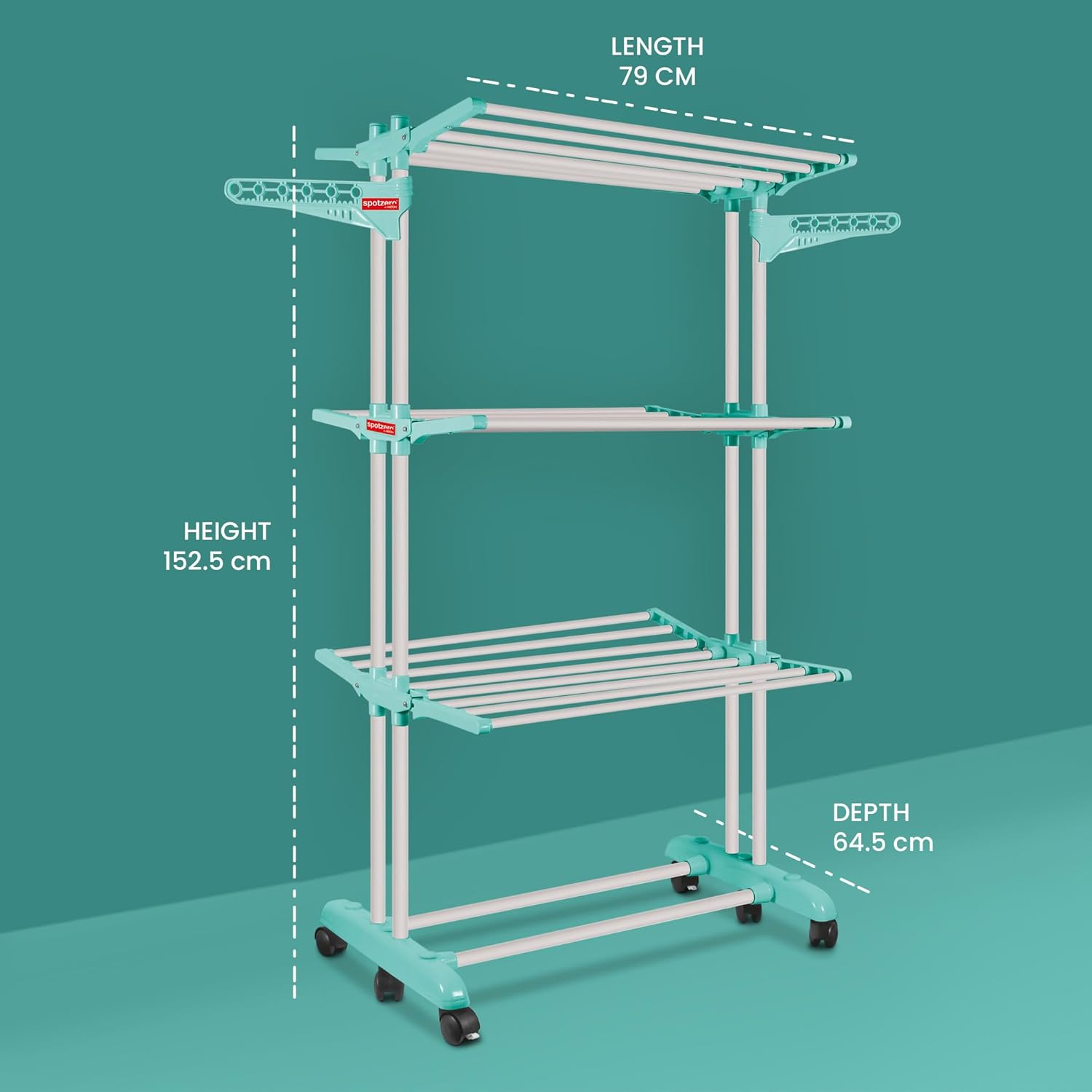 SPOTZERO by Milton 3 Layers Cloth Drying Stand, Aqua Green | Cloth Dryer | Floor | Balcony