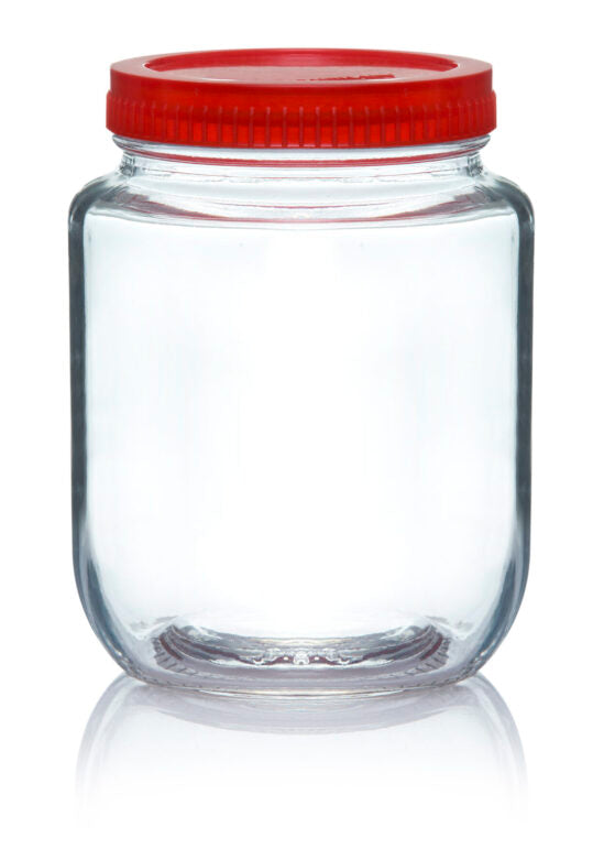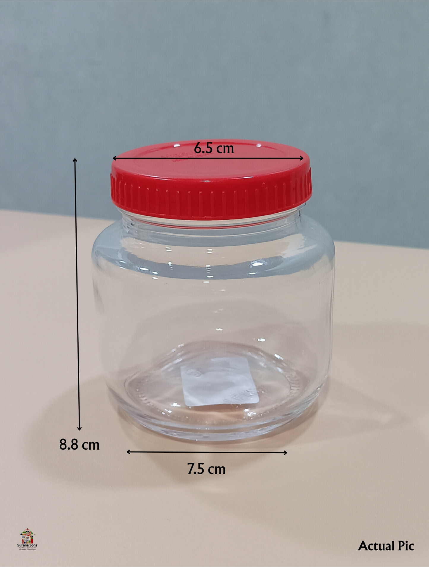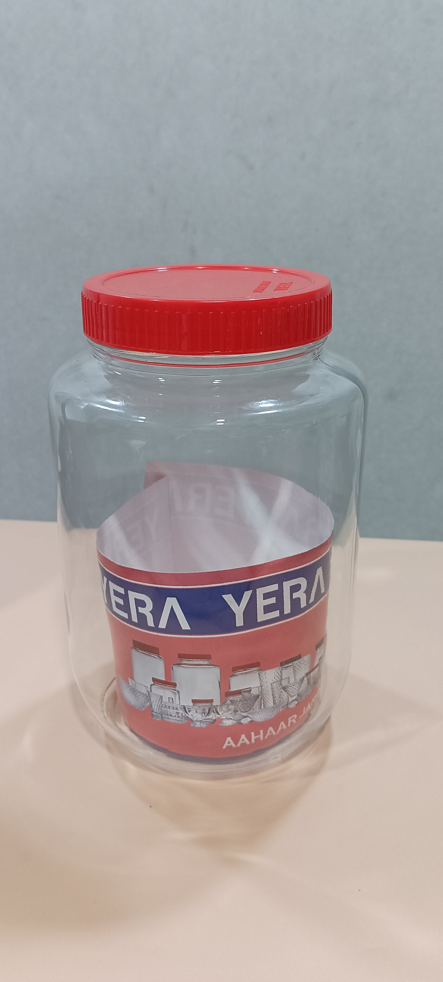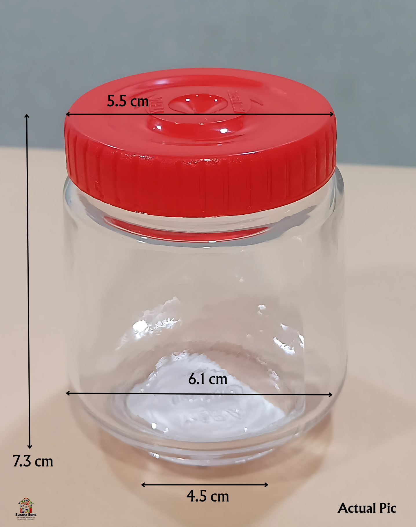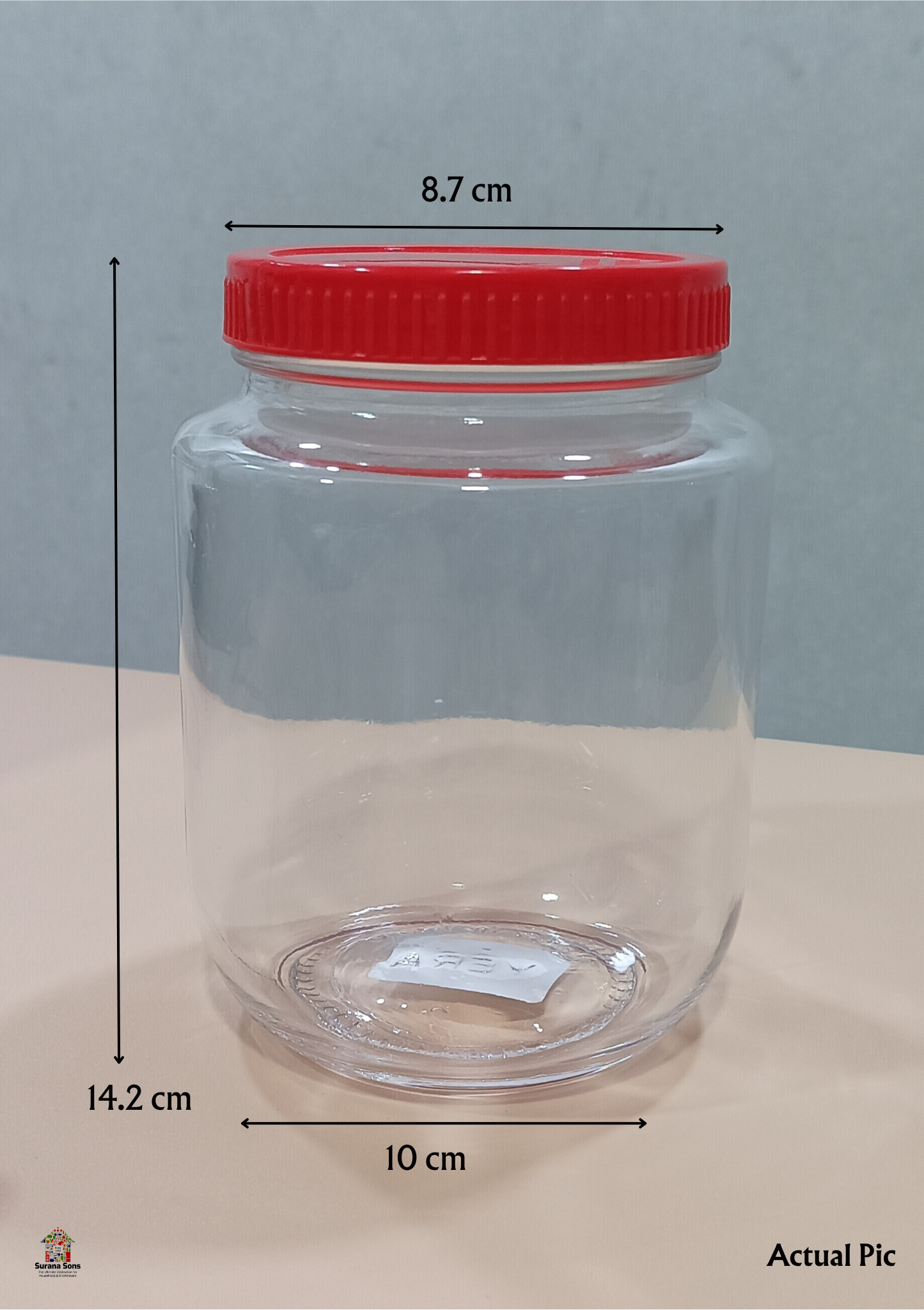 - Brand: Yera Glass - Body Material: Glass - Lid Material: Plastic, Red. Round Glass Jar suitable for modular kitchen, this glass jar is transparent which helps to identify inside contents easily.